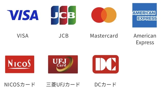 クレジットカードでのご精算は暗証番号が必要となります。以下のクレジットカードがご利用いただけます。